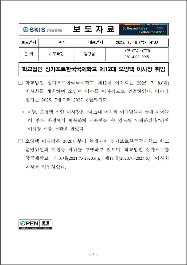 (º¸µµÀÚ·á)_Çб³¹ýÀÎ ½Ì°¡Æ÷¸£Çѱ¹±¹Á¦Çб³ Á¦12´ë ÀÌ»çÀå ÃëÀÓ.hwp